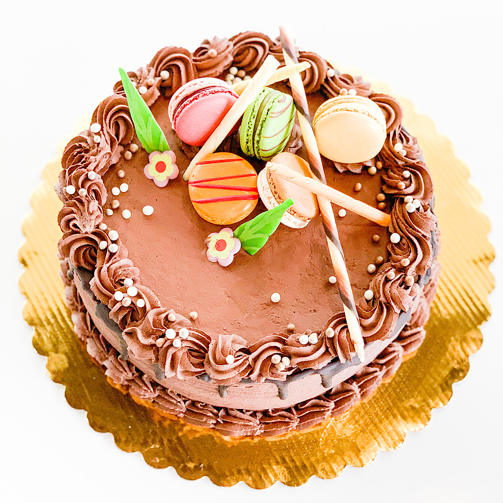Chocolate Chiffon layered with Callebaut chocolate ganache.