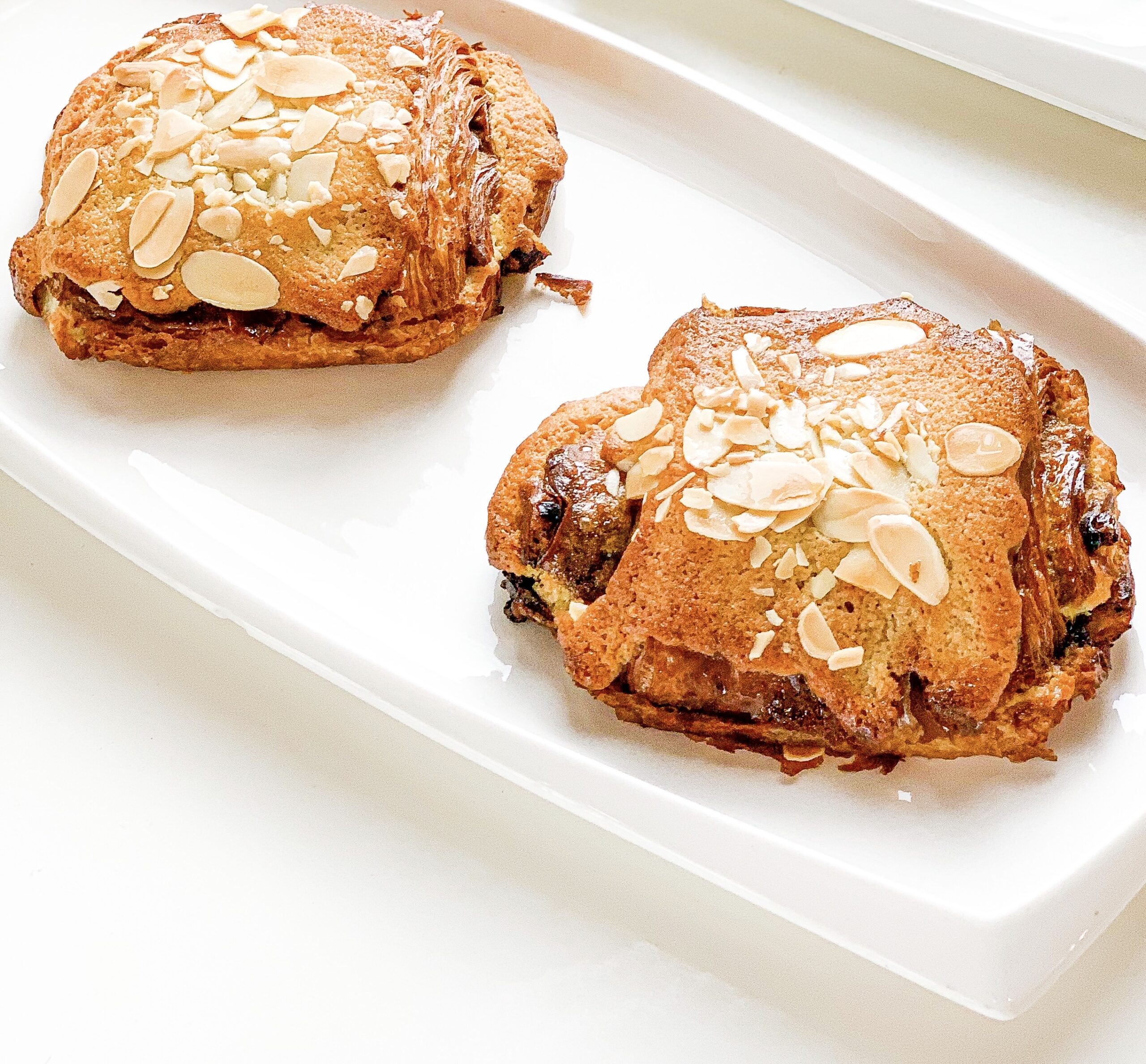 DOUBLE BAKED CHOCOLATE CROISSANT WITH ALMOND FRANGIPANE AND SHAVED ALMONDS