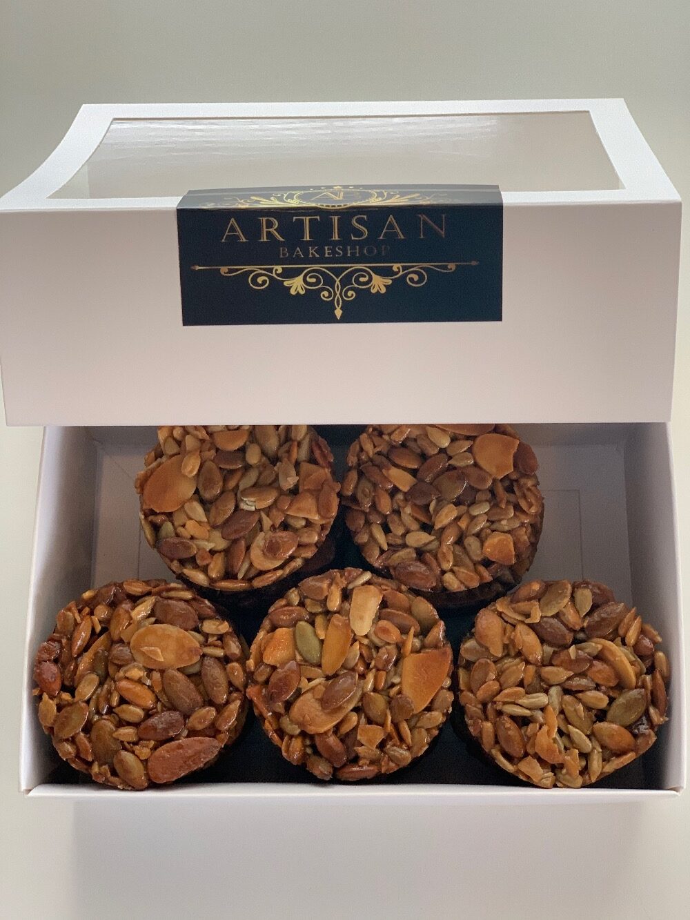 Florentines are made with Sliced Almonds, Pumpkin sees and sunflower seeds. It is gluten free.
