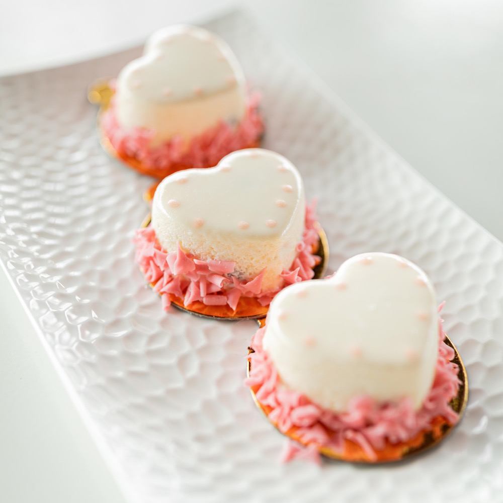 Gluten free cheesecake filled with saskatoon berry and finished with white chocolate glaze