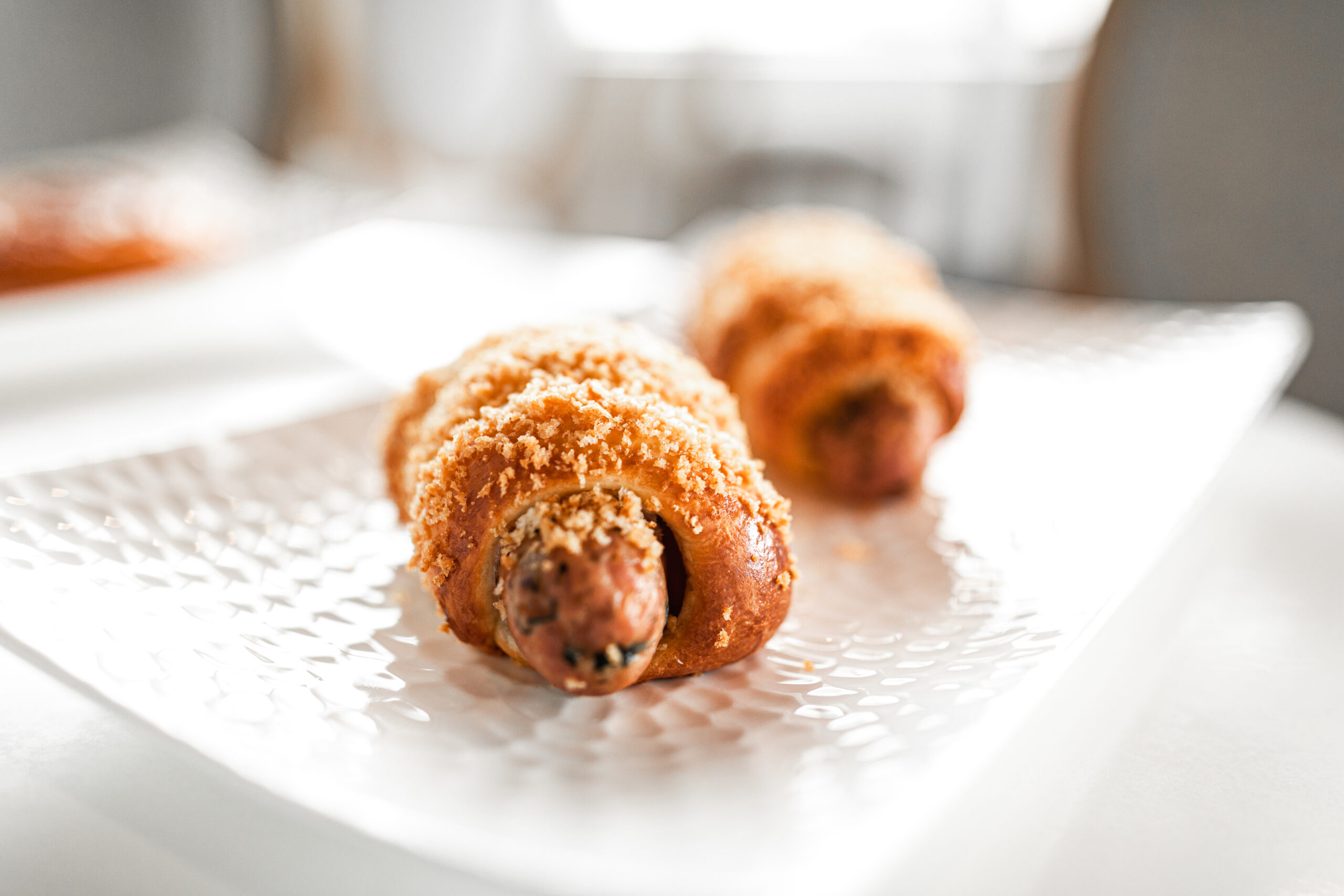 Brioche rolled over Chicken, Spinach and feta sausage